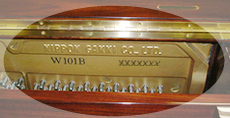 | 買い取りをご希望される方はご連絡下さい。 その際、ブランド名・器種名・製造番号・ペダルの本数を控えて頂きますよう宜しくお願い致します。 ブランド名はピアノの蓋、器種名と製造番号は天屋根を開けると中の金色のフレームに記載されています。 写真をご参考下さい。 >>>>> |